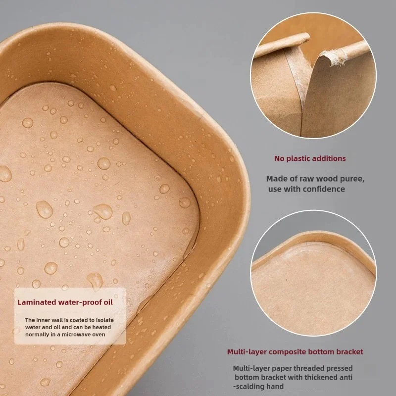 6.Versatility: Paper meal boxes come in various sizes and shapes to accommodate different types of food items, from sandwiches and salads to full meals, making them versatile for a wide range of food service applications.